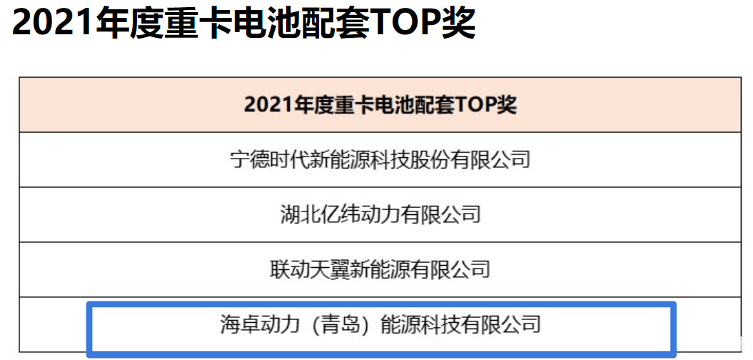 6月28-29日,“2022第五屆中國(guó)新能源汽車(chē)產(chǎn)業(yè)大會(huì)暨第二屆中國(guó)新能源重卡產(chǎn)業(yè)生態(tài)大會(huì)”在成都隆重舉辦。海卓科技受邀參加,并榮獲第六屆中國(guó)新能源商用車(chē)“金熊貓獎(jiǎng)”—2021年度重卡電池配套TOP獎(jiǎng)。同時(shí)入圍的還有寧德時(shí)代等三家企業(yè)。海卓科技是入圍該獎(jiǎng)項(xiàng)的唯一一家燃料電池企業(yè)。